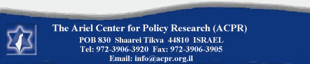 The Ariel Center for Policy Research (ACPR) is devoted to incisive research and discussion of politicaland strategic issues concerning Israel and the Jewish people.